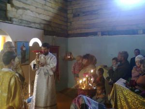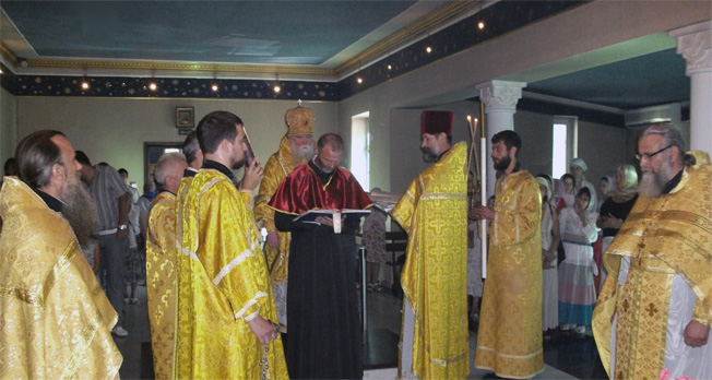 совершил в новом храме первую Божественную Литургию в сослужении иеромонаха