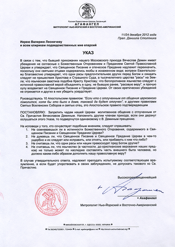 Украины гражданина Стретовича Василия Александровича (Митрополита МП Виссариона),