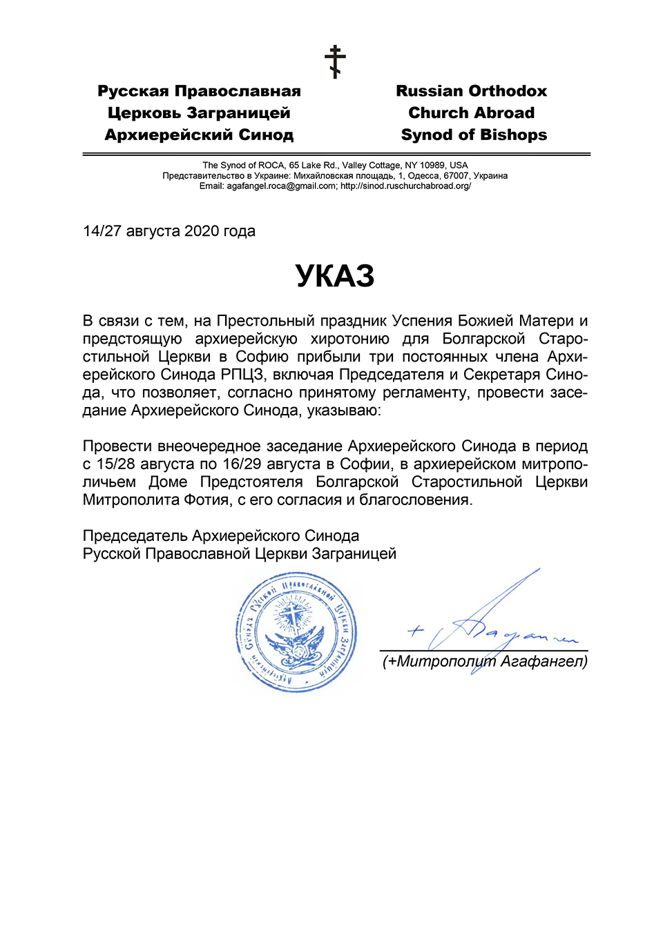 15/28–16/29 августа 2020 года, Митрополичий дом Болгарской ИПЦ, София, Болгария