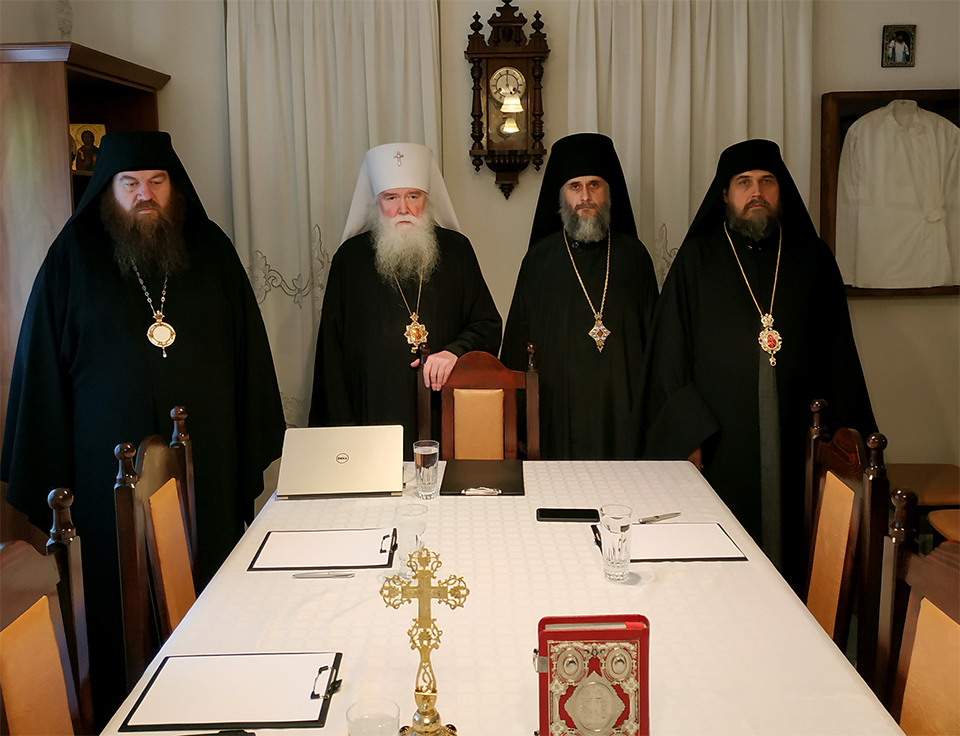 Постановили: В связи с пандемией и невозможностью планировать сборы заседаний Синода РПЦЗ, проводить заседания Синода в зависимости от обстоятельств. В меж-синодальный период, разрешение общецерковных вопросов находится в ведении Первоиерарха РПЦЗ. Архиерейский Синод сожалеет, что некоторые архиереи, в этот не ординарный период жизни Церкви, высказались против проведения заседаний с использованием современных средств видео связи.
