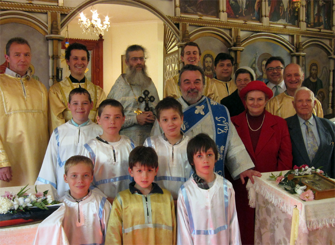 28.08.11 - Melbourne, Australia.  The Church of the Martyrs of Vilnius.  The rector Hieromonk Andrei Erastov and Protodeacon Basil Yakimov and altar attendants and parishioners on the feast day of the Dormition of the Mother of God.  The church was filled to overflowing with many new visitors. the choir sang beautifully and there was a large number of communicants.  Fr. Andrei has also organized an icon painting school at the parish.