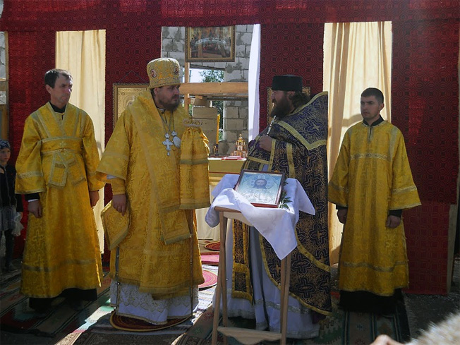 21\09\11 - Metropolitan Agafangel served Divine Liturgy on the occasion of the feast day of the Nativity of the Theotokos at the St. John of Shanghai convent in the village of Egorovka.  (Hegumena Aleksandra is the abbess at the convent.)  Also serving with Metropolitan Agafangel were Hegumen Methodius, Fr. Simeon Kaloev, Fr. Georgiy Olynik and Fr. Georgiy Storozhetskiy.
