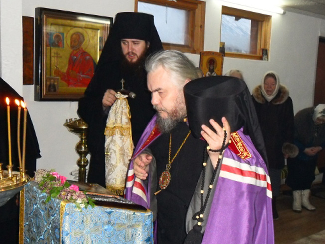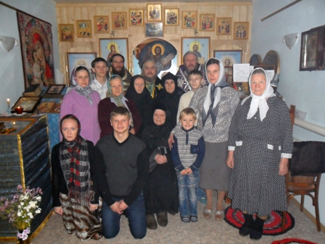 25-26\03\11 - The Right Reverend Afanasiy, Bishop of Vologodsk and Velikoustyuzhsk, visited the Church of the Our Lady of Kazan and Our Lady of Feodorovsk Mother of God icons near Kostroma, which is tended to by Fr. Valeriy Leonichev (he is the rector of our parish in Moscow).  On March 25, they served Vigil and Divine Liturgy the next day, where the entire parish took communion including Cossack elder A.M. Starshikh, his family, and others.  After the service, they discussed plans to have a Cossack summer camp for young boys.  They will turn to the ROCA Assistance Fund for support.