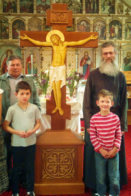 The rector, Hieromonk Andrey (Erastov), of the Holy Martyrs of Vilnius church in Australia completed a Golgotha cross used at the memorial stand.