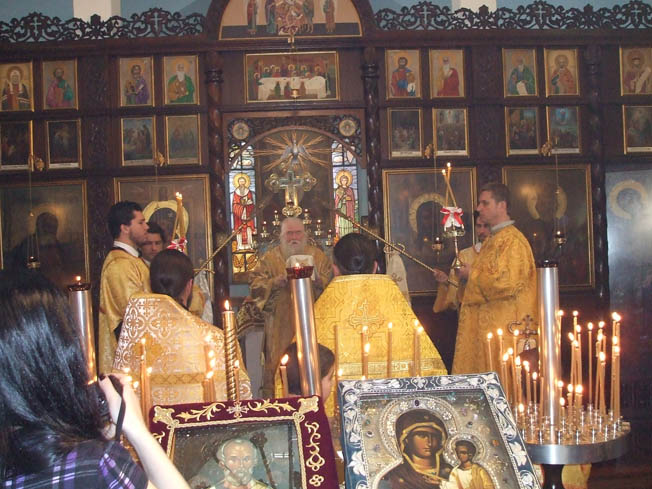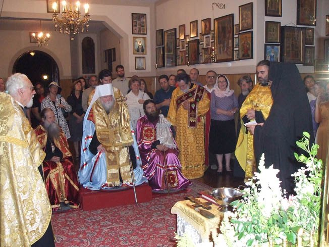 On Saturday, August 1, 2009, all the clergy served the Vigil in the Church of St. Nicholas and the liturgy on Sunday. On Sunday, they celebrated the 70th anniversary since the founding of the church (the actual date was earlier in the week). During the Divine Liturgy, Metropolitan Agafangel awarded Fr. Vladimir Petrenko the right to wear a gold pectoral cross, elevated Subdeacon John Yakimov to Deacon, and tonsured a parishioner of the church, Roman Juanemura-Ramirez, a Reader. A festive lunch was held at a nearby hall, attended by 290 people.
