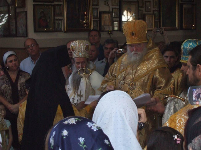 All the clergy served the Vigil together the next day. On Saturday, August 1, 2009, on the feast day of St. Seraphim of Sarov, they served in the newly-renovated church in the city of Carapicuiba. This was the feast day of that church and the first service there, since the renovation of the church and the construction of a new iconostasis was completed. A trapeza was held after the service.