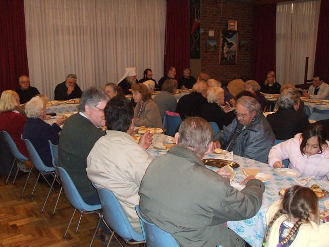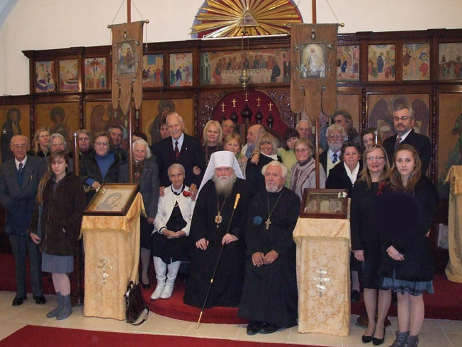 On August 6, 2009, Metropolitan Agafangel served a moleben honoring the 50th anniversary of the Church of St. Sergius, along with Mitred Archpriest Vladimir Schlenew, Fr. Alexander Iwaczewicz, Fr. Michael Burduk, and Deacons Igor Baratov and Konstantin Burda. Trapeza was held in the church hall after the service, where Metropolitan Agafangel spoke with the parishioners.